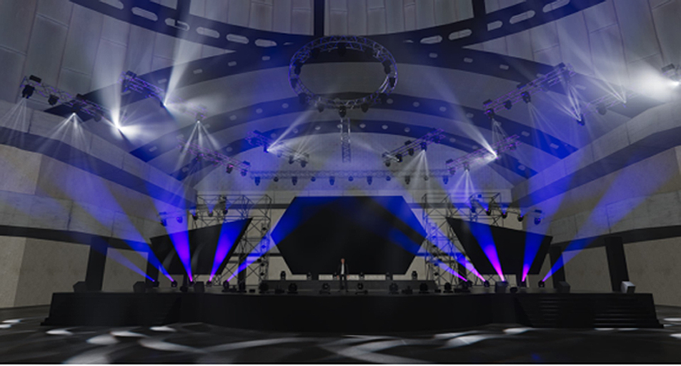 效果呈現(xiàn)是通過可視化軟件(WYSIWYG、UE5、Depence)模擬現(xiàn)場情況,在逼真的建筑環(huán)境中模擬出舞臺燈光,激光,視頻和特殊效果,設(shè)計應(yīng)具備多種造型手段,